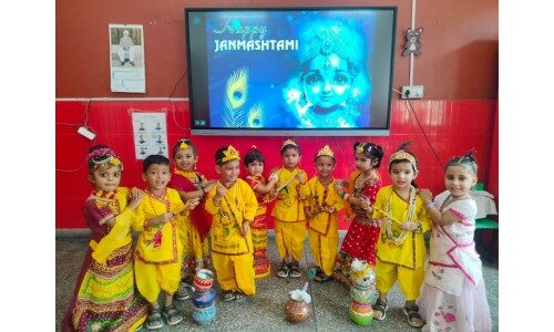 The students of Darshan Academy, Ambala, celebrated Janmashtami with great enthusiasm. The young children dressed up as Lord Krishna and Radha, bringing the festive spirit to life. The celebration began with a special assembly where the students performed a small skit depicting scenes from Lord